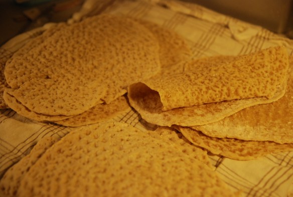 • De jag gjorde hade inte klarat tunnbrödrulle-provet. Det är lite därför jag vill prova och lägga i lite husk för att se om de blir lite mer följsamma. De som blev riktigt tunna klarades av att rullas, men jag tror att de skulle haverera med mos i.