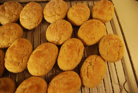 Ni som följer den här bloggen vet att min mission för gott bröd är en viktig drivkraft för mig. Surdeg är nästan ett måste för att lyckas med brödbaket tycker jag. Sedan maj månad gäller dessutom vetestärkelsefritt, och det utmanar än mer. Och så vet ni som följer bloggen att frallor eller småbröd är det som jag grejar mest med – enkelt att ha i frysen. Jag har tyckt att många av de småbröd jag bakat utan vetestärkels har varit väldigt goda, men lite kompakta i konsistensen, men nu i kväll satt det – är toppnöjd med dagens brödbak.