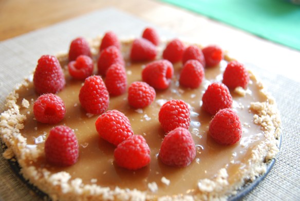 - Något bär med lite friskhet i sig. I ursprungsreceptet är det lingon eller röda vinbär. Jag hade inget av det hemma så det fick bli hallon. Det blev också mycket gott.
