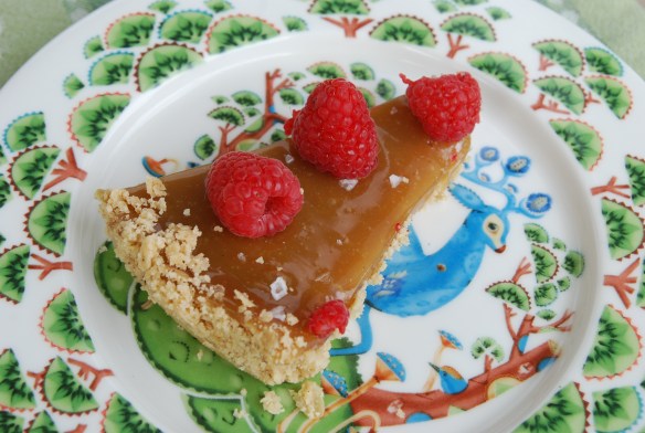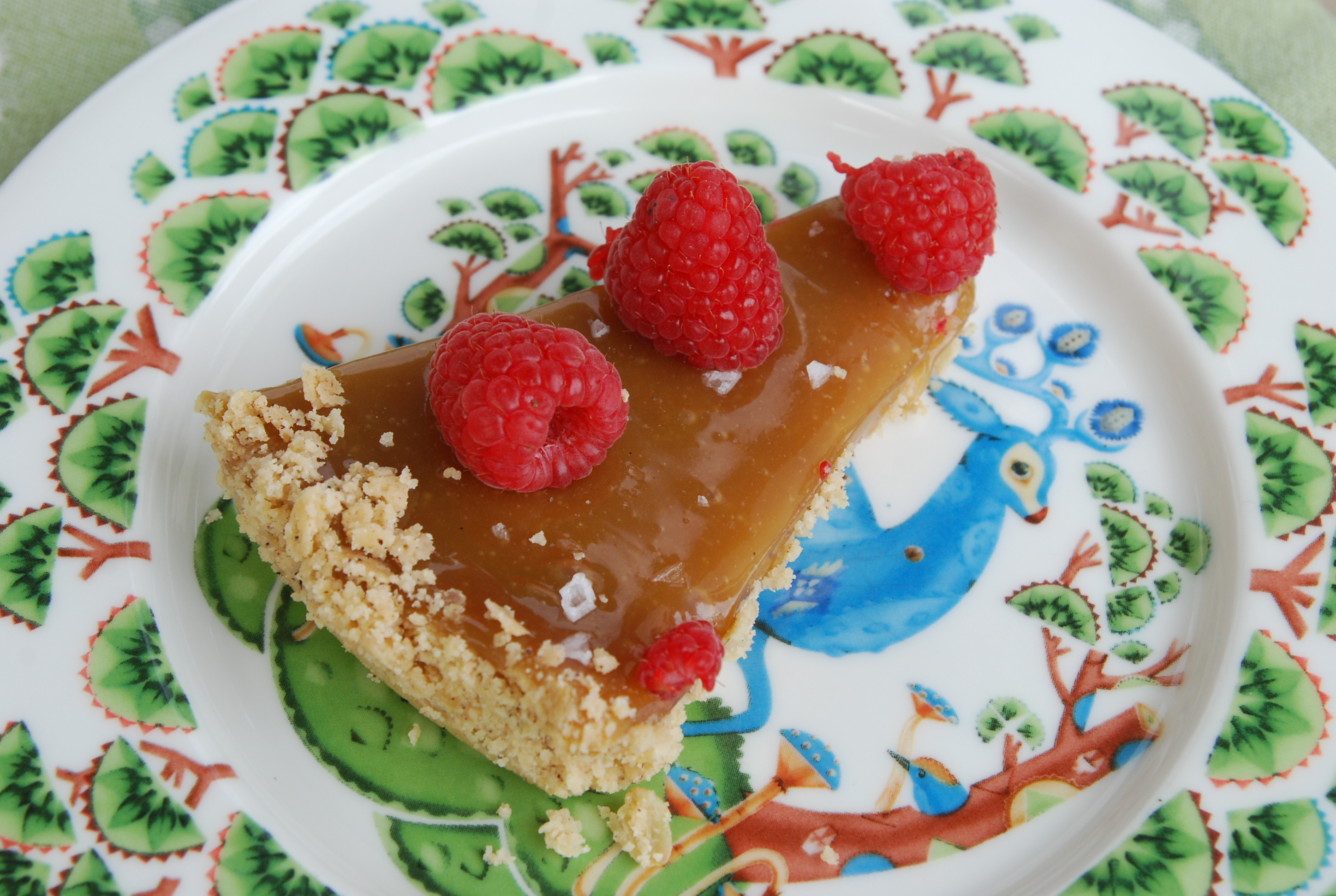 När smeten svalnat, häll den på pajbotten. Fördela jämnt och fint. Strö över lite flingsalt. Ställ i kylen minst en timme.