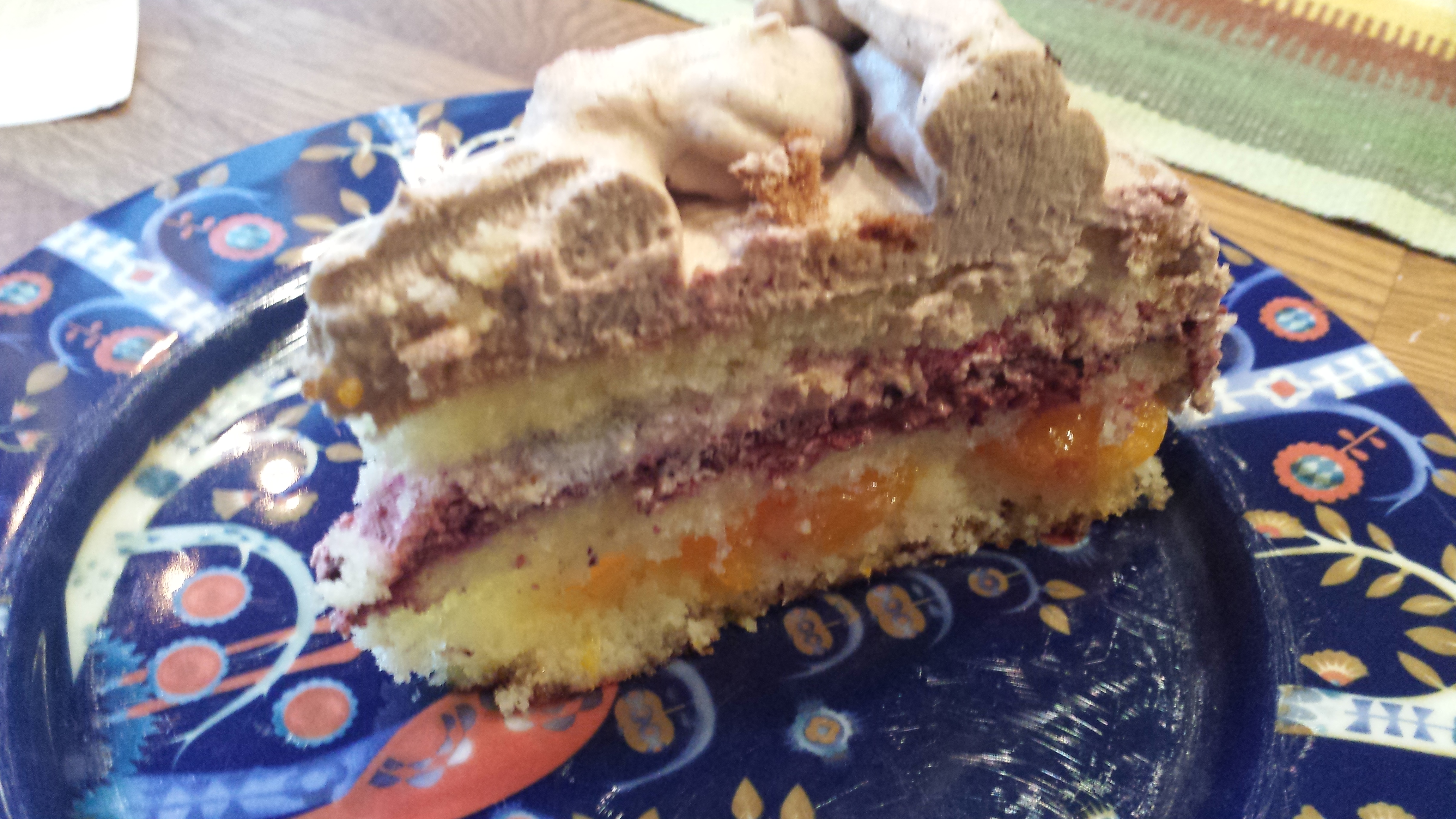 Fördela fyllningarna på varsin botten. Montera tårtan.