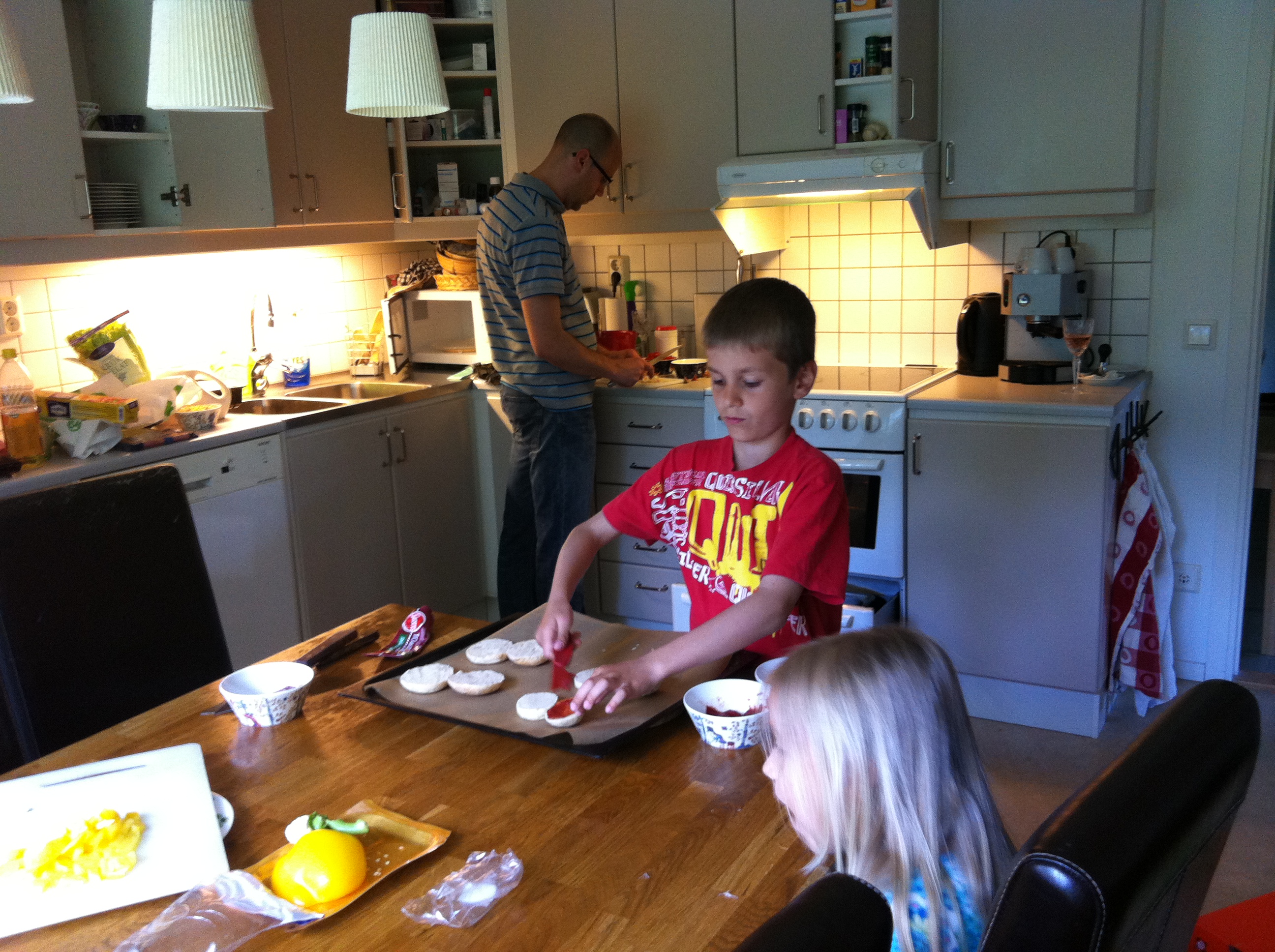 Vi är ofta tillsammans allihopa i köket. Det är ett härligt sätt umgås på.