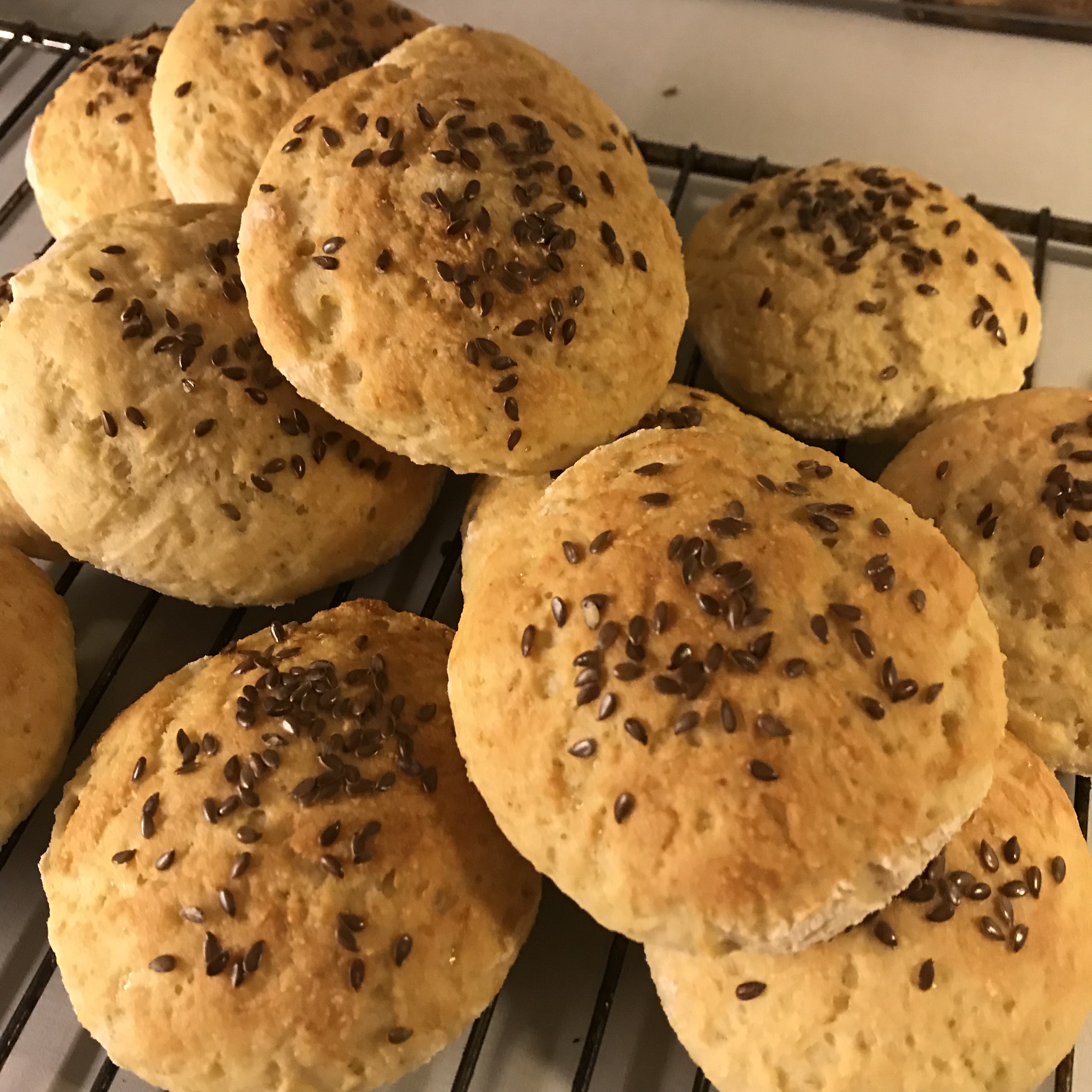 Den här sommaren har vi renoverat vårt nya fritidshus och ofta har jag glömt att baka bröd. Då har dessa underbart goda frukostfrallor varit räddningen. Serverar man dem till personer som tål allt skulle de inte kunna säga att de är utan gluten och vete.