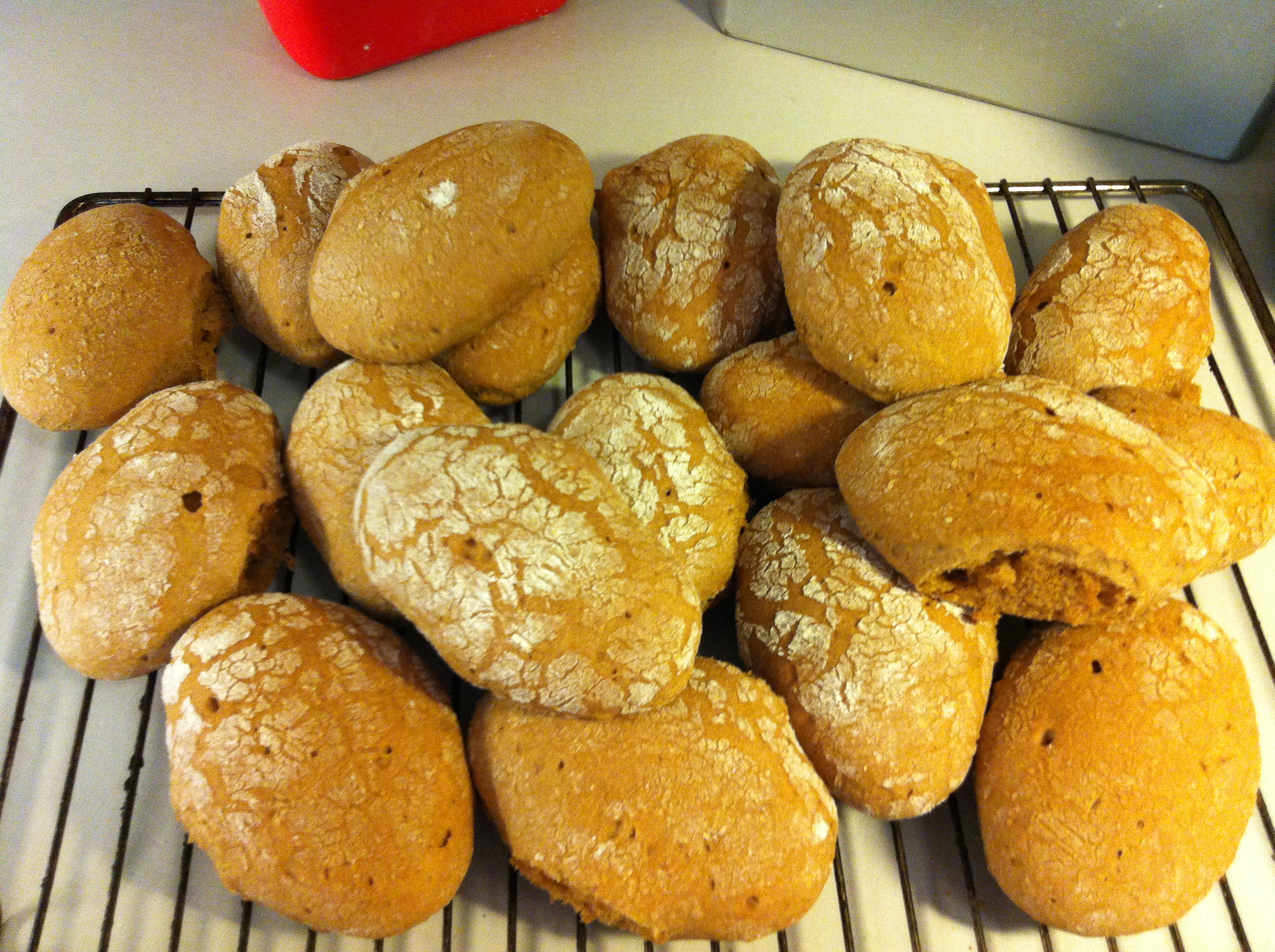 Igår började jag sedan med det bröd som blev klart idag. Det man kan säga är att smaken blir väldigt god, men bröden verkar bli lite mer kompakta med naturligt glutenfria mjöl än med vanlig glutenfri mjölmix. Till just det här brödet gjorde det ingenting.